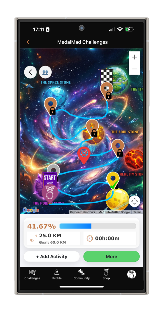 Every challenger has access to the MedalMad app where you can safely share your progress, find support and enjoy accountability.