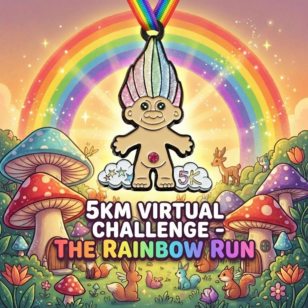 Find Your Rainbow: Step into a world of colour and whimsy with the Rainbow Run 5km! Whether you’re an experienced runner or just starting out, this virtual run is the perfect way to add a splash of joy to your fitness journey. Complete the 5km at your own pace and place, and earn this exclusive medal to celebrate your achievement!